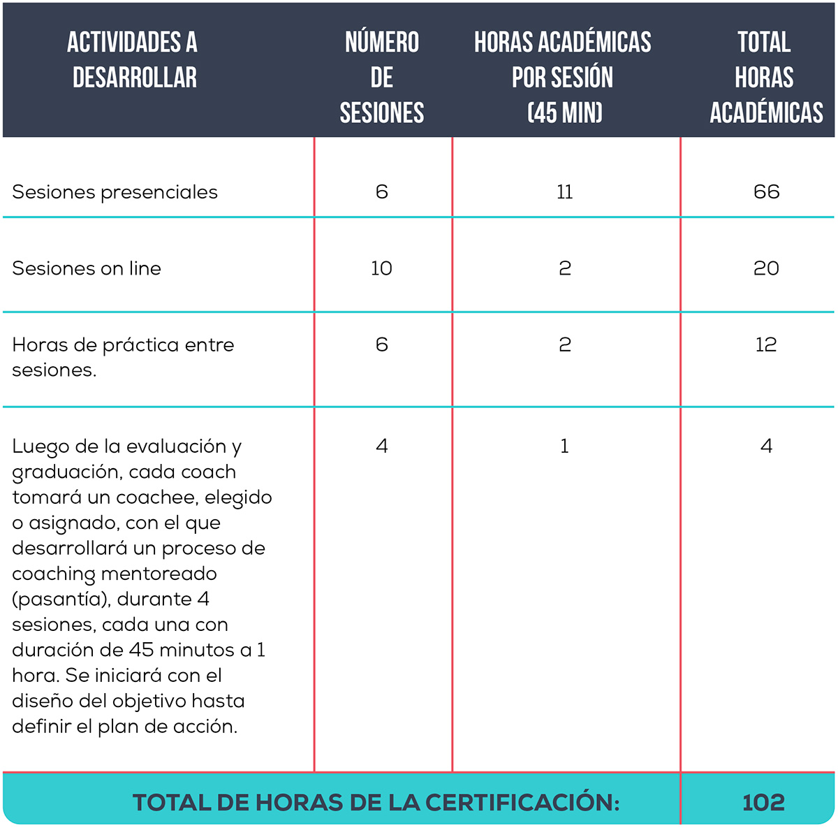 Acreditada por Vida Gerencial y la International Coaching & Mentoring Federation–ICMF (USA), con una duración de 102 horas académicas.
